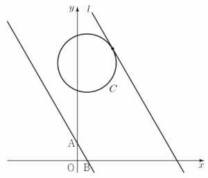 직선 $l$과 원 $C$는 한 점에서 만나므로 점 $\mathrm{P}$의 개수는 $1$